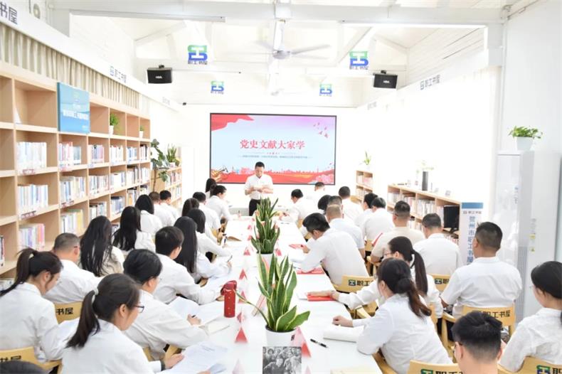 “新时代中国共产党的历史使命,就是实现中华民族伟大复兴的中国梦……”各党支部党员代表集体诵读《论中国共产党历史》节选,在朗朗书声中重温百年党史的波澜壮阔,感悟从革命年代的星火燎原到新时代的强国征程,在共读中汲取信仰力量,从而把对党的忠诚转化为服务发展的实际行动,脚踏实地做好每项工作。